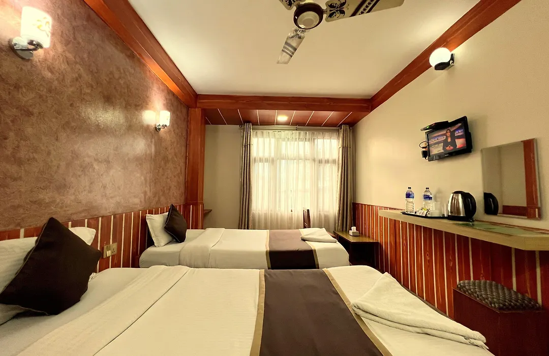 Featuring currency exchange and an ATM, the 2-star Thamel Seasons Hotel Kathmandu stands around a 25-minute walk from the richly detailed stone sculpture "Kal Bhairab Temple". Overlooking the city, the hotel lies not far from Kala Pattar and includes a steam room and a foot bath.